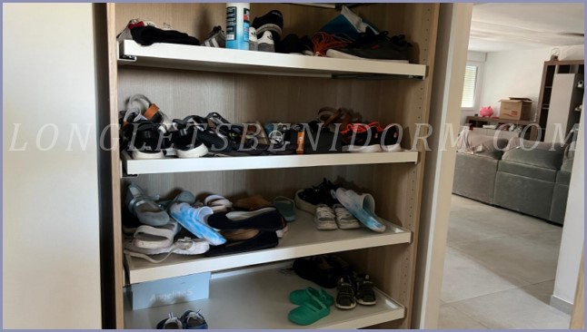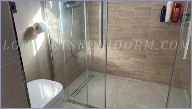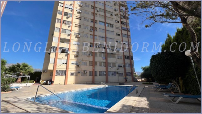 The complex has a communal pool and private unnumbered parking area. Very quiet building with a long distance to the next building in a privileged location, next to the Pueblo market and close to shops, restaurants and bus stop. Levante beach at 15 minutes walking. Living in Benidorm but with the advantages of living in peace and quiet.