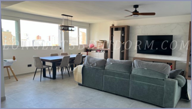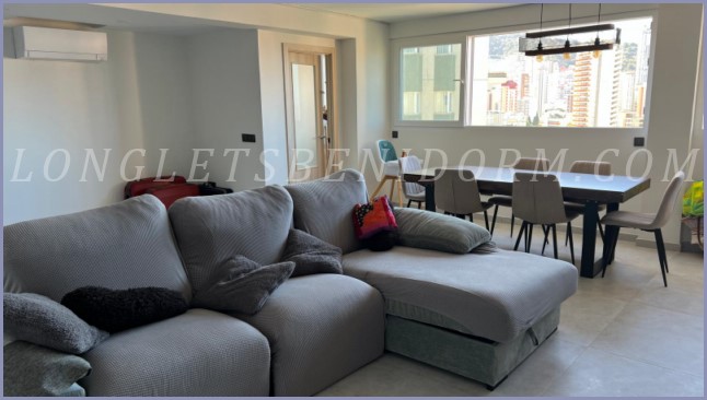 LONG LET in BENIDORM: Large and luxurious corner apartment located on the 14th floor, very bright, completely refurbished, used for with a few months and with high quality and design furniture with beautiful panoramic views.