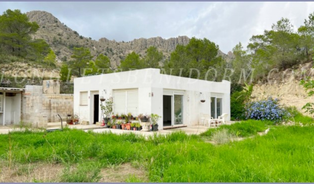 LONG LET in FINESTRAT: Beautiful unfurnished house, all on one floor, in the mountains, in the middle of nature with a fenced plot of 7.000 m2.