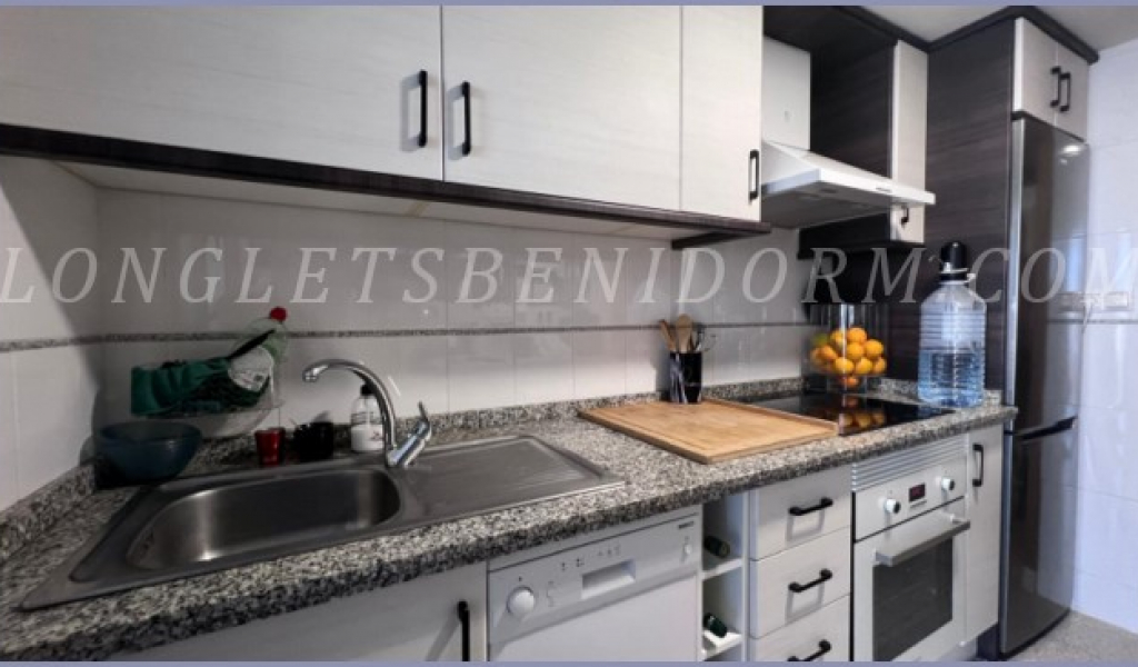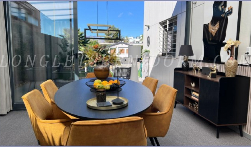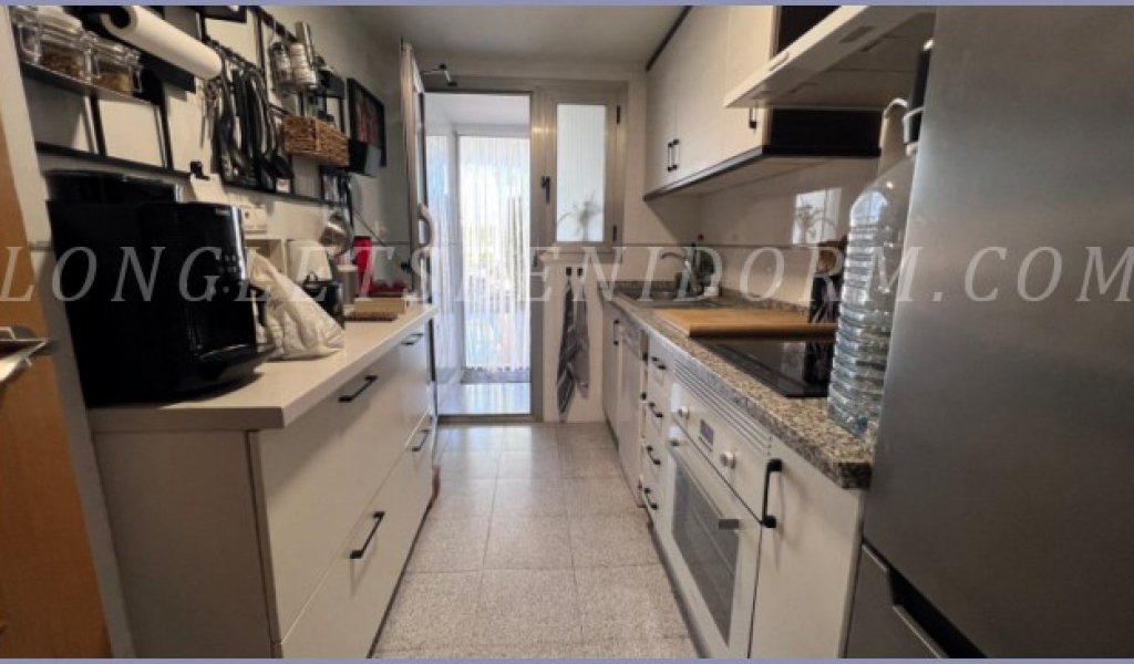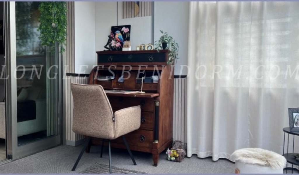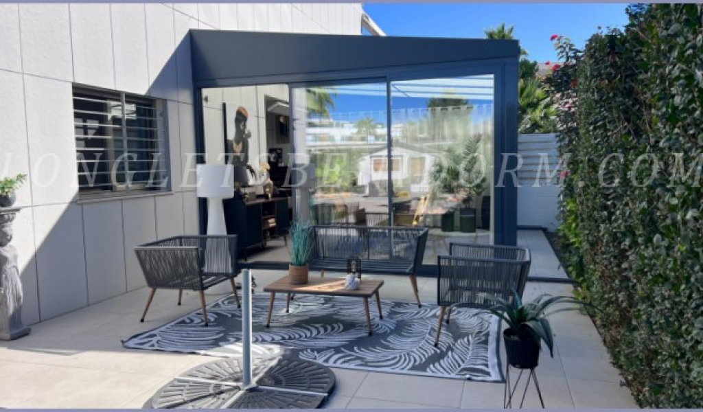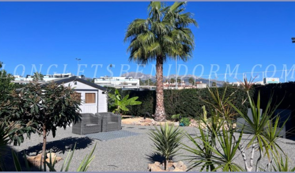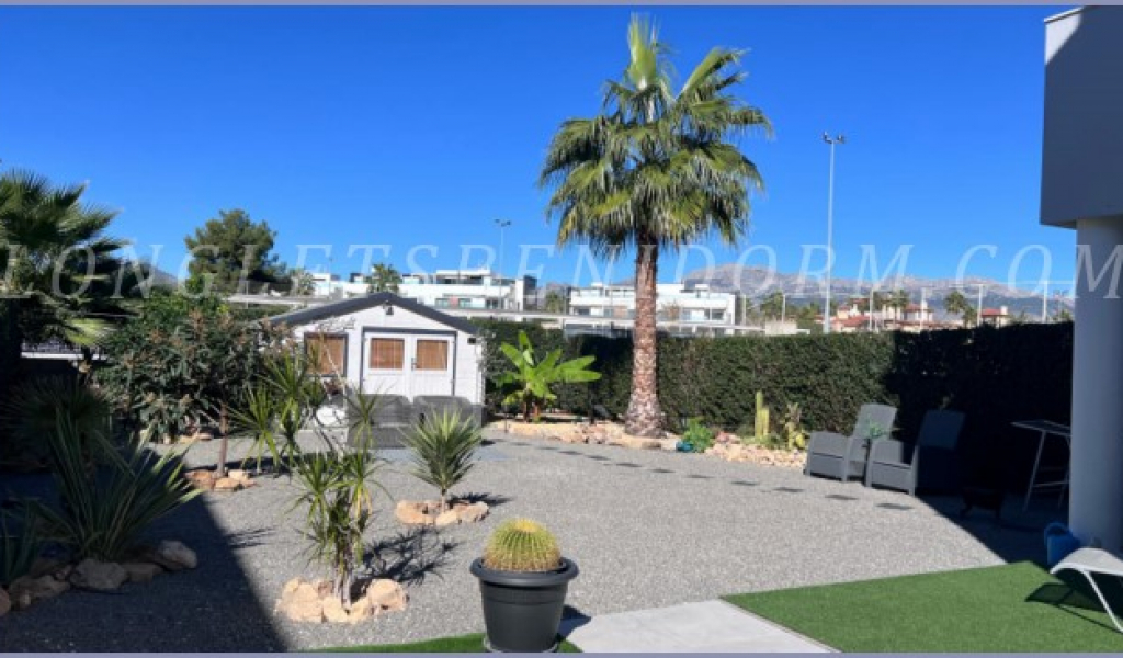 LONG LET in ALBIR: Modern unfurnished ground floor corner-apartment with a spectacular outside area of 270 m2 with an integrated glazed enclosure of 22 m2 that can be accessed both from the outside area and from the living room. This outdoor area also has a storage room.