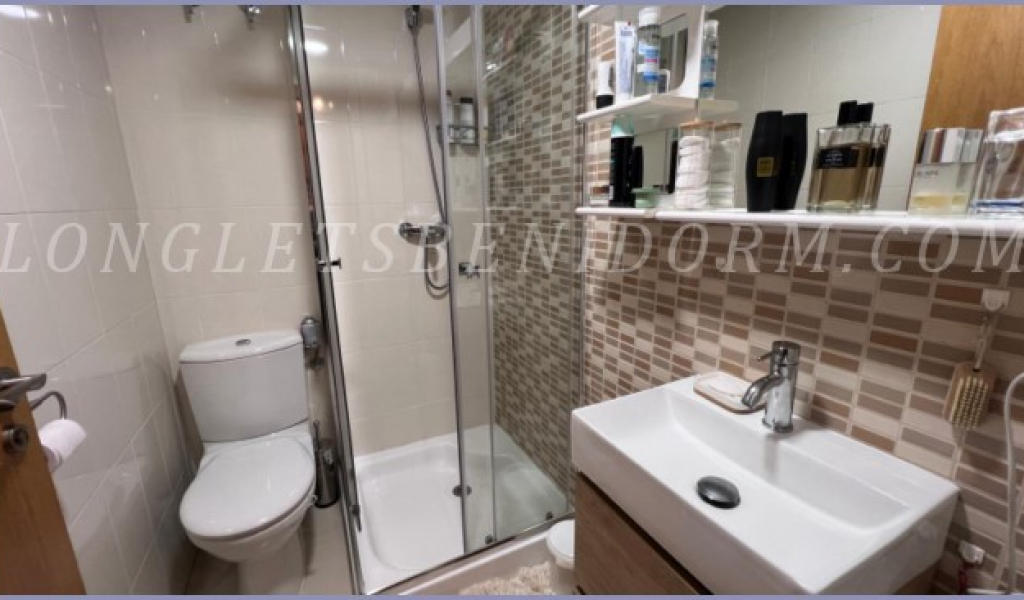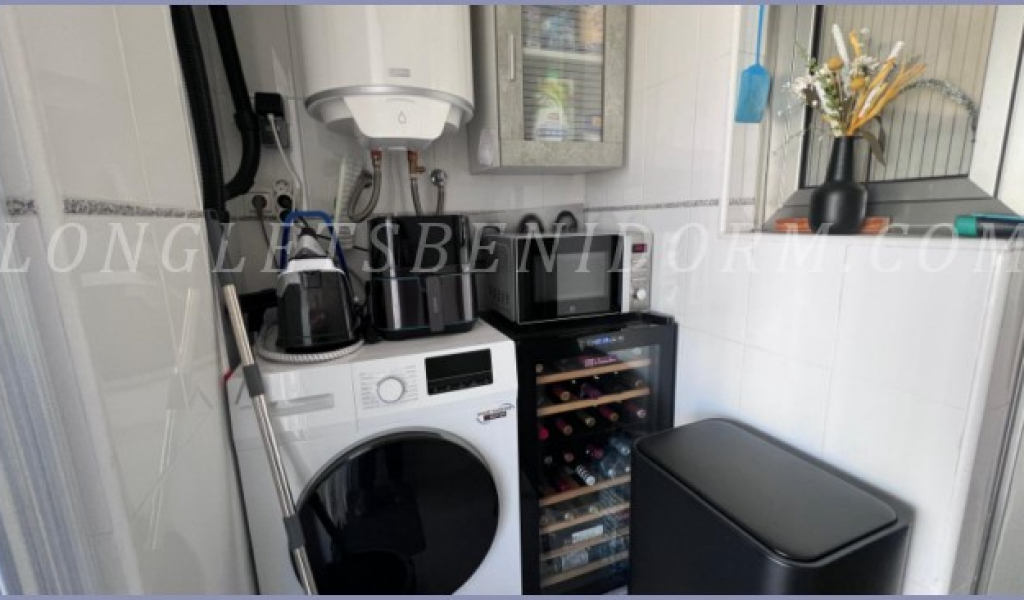 The property has 2 bedrooms, 2 bathrooms (one with shower and other with bathtub) and closed kitchen with a small laundry room. It has central air conditioning and central heating.