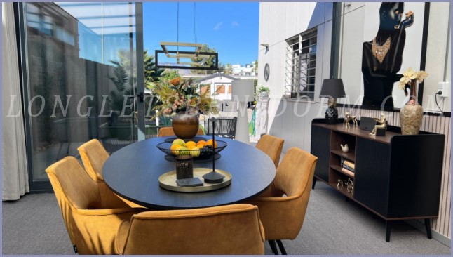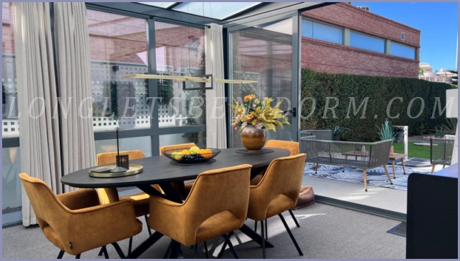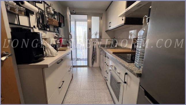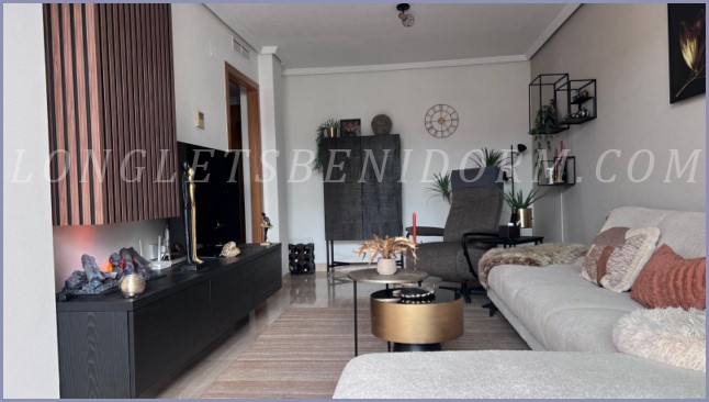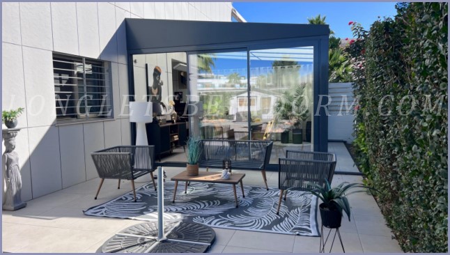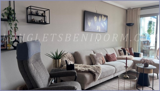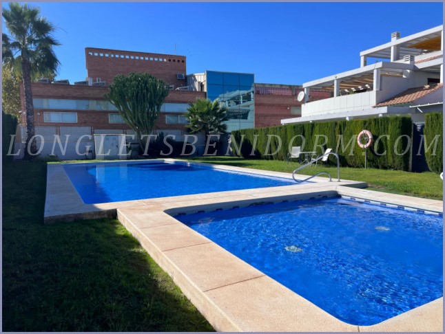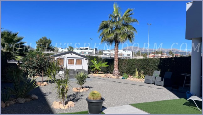 LONG LET in ALBIR: Modern unfurnished ground floor corner-apartment with a spectacular outside area of 270 m2 with an integrated glazed enclosure of 22 m2 that can be accessed both from the outside area and from the living room. This outdoor area also has a storage room.