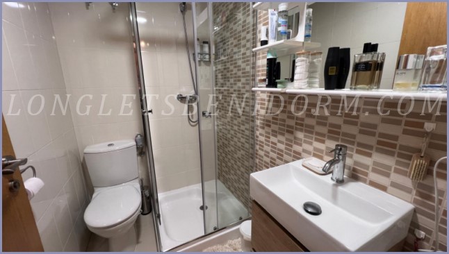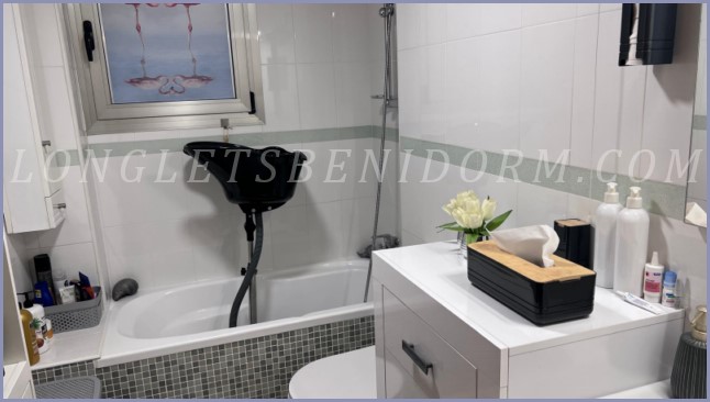 The property has 2 bedrooms, 2 bathrooms (one with shower and other with bathtub) and closed kitchen with a small laundry room. It has central air conditioning and central heating.