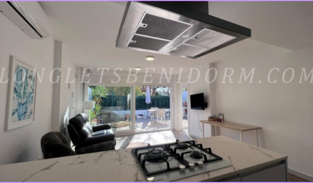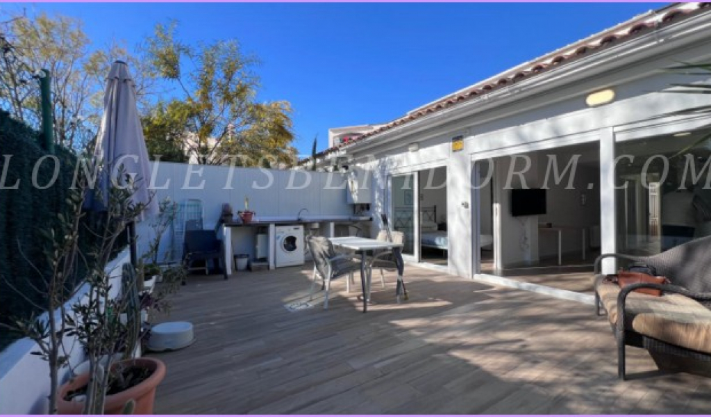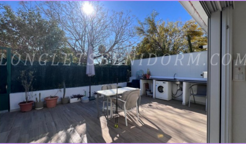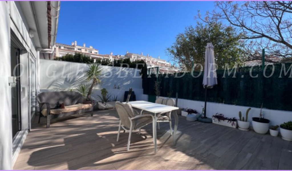 LONG LET in ALTEA: Groundfloor terraced house with 2 terraces – one with 10 m² and the other, a garden terrace, with 30 m² – in a residential complex with a swimming pool, tennis court and extensive landscaped gardens, very close to Altea’s old town and the Palau de les Arts.