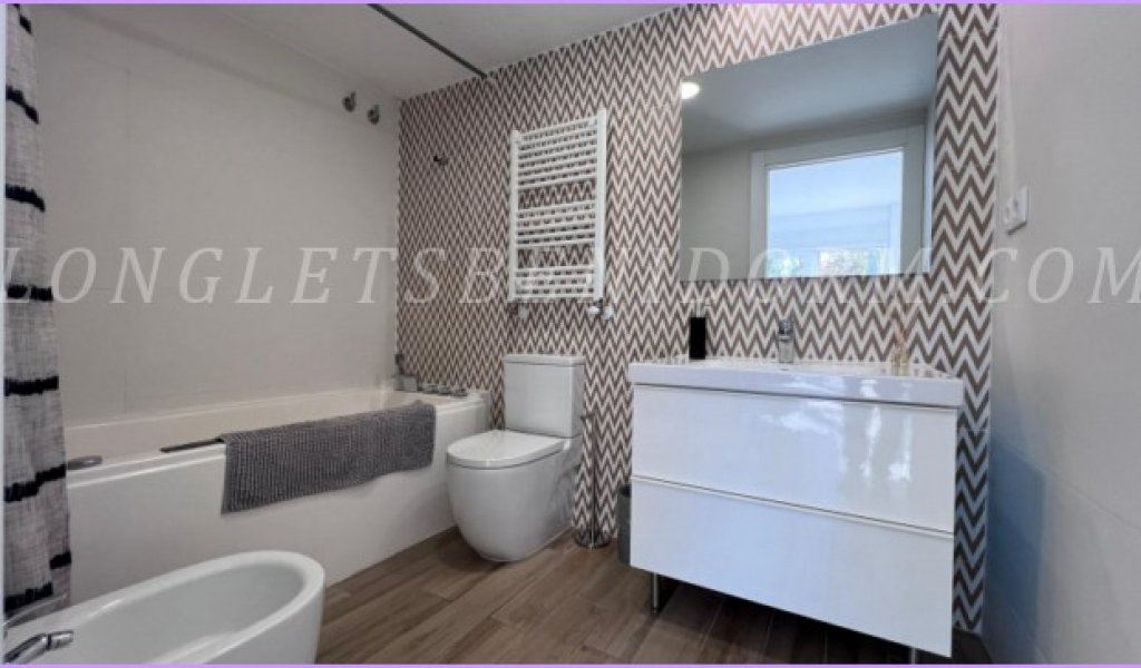 The property has a spacious and bright living room with a beautiful open-plan kitchen equipped with all appliances and an island. It has 3 bedrooms, 2 full bathrooms, one with a whirlpool bath featuring music and chromotherapy, and the other with a shower. All rooms are air-conditioned and heated.