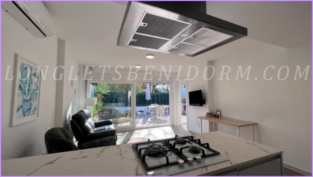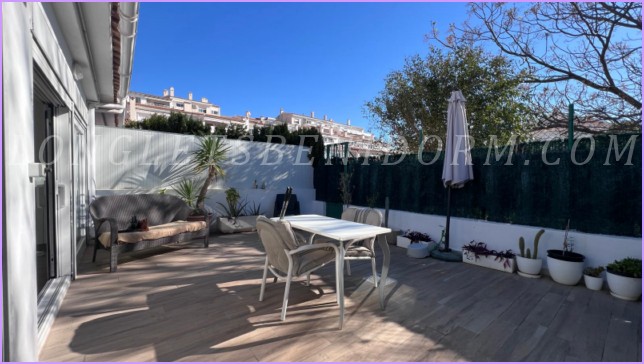LONG LET in ALTEA: Groundfloor terraced house with 2 terraces – one with 10 m² and the other, a garden terrace, with 30 m² – in a residential complex with a swimming pool, tennis court and extensive landscaped gardens, very close to Altea’s old town and the Palau de les Arts.