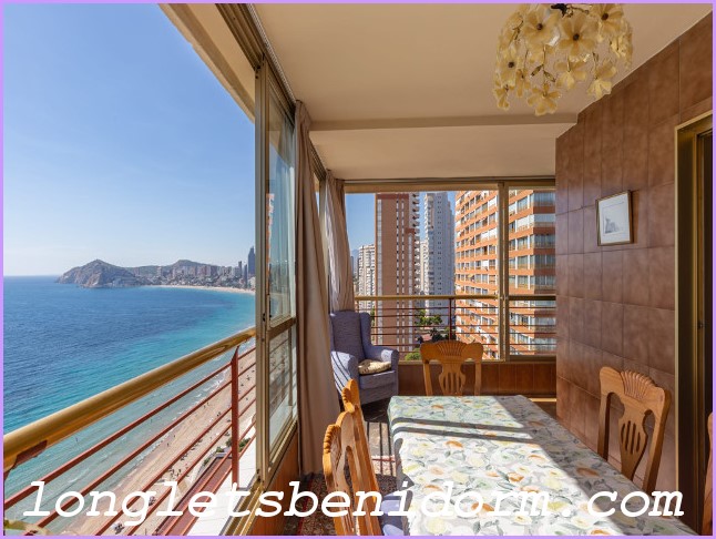 ALQUILER TEMPORAL en BENIDORM para INQUILINOS JUBILADOS: Bonito y lujoso apartamento de esquina, amueblado, situado en la planta 19 con vistas al mar impresionantes en primera línea de playa. La propiedad está disponible desde noviembre hasta mayo (ambos incluidos).