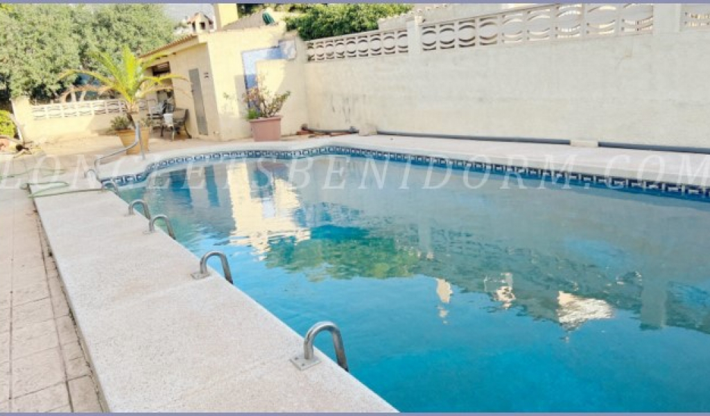 ALQUILER ANUAL en LA NUCÍA: Gran villa completamente amueblada, de 3 plantas con bonitas vistas panorámidas y piscina privada. La vivienda cuenta con 2 viviendas separadas, ambas con calefacción central.