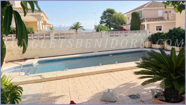 ALQUILER ANUAL en LA NUCÍA: Gran villa completamente amueblada, de 3 plantas con bonitas vistas panorámidas y piscina privada. La vivienda cuenta con 2 viviendas separadas, ambas con calefacción central.