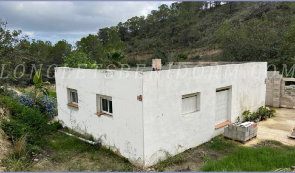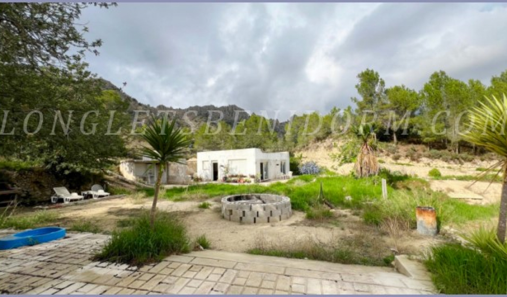 ALQUILER ANUAL en FINESTRAT: Bonita casa sin amueblar, en una planta, en las montañas, en plena naturaleza con parcela vallada de 7.000 m2.