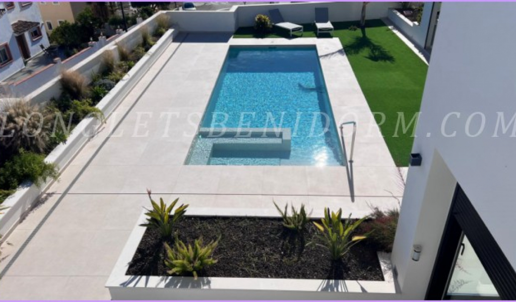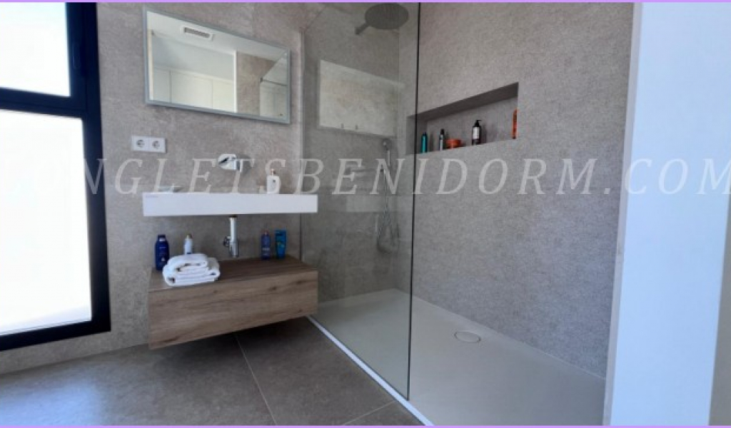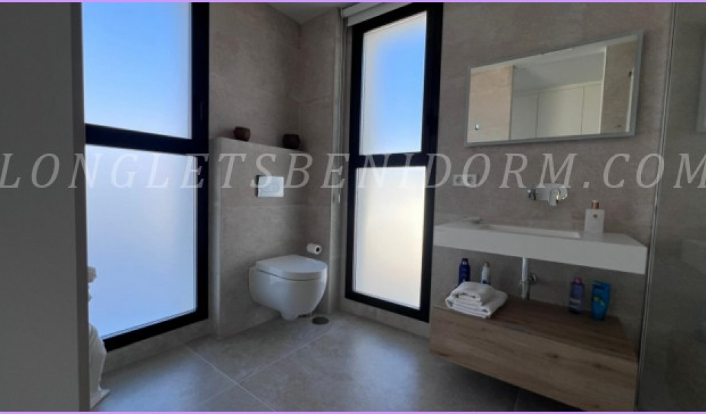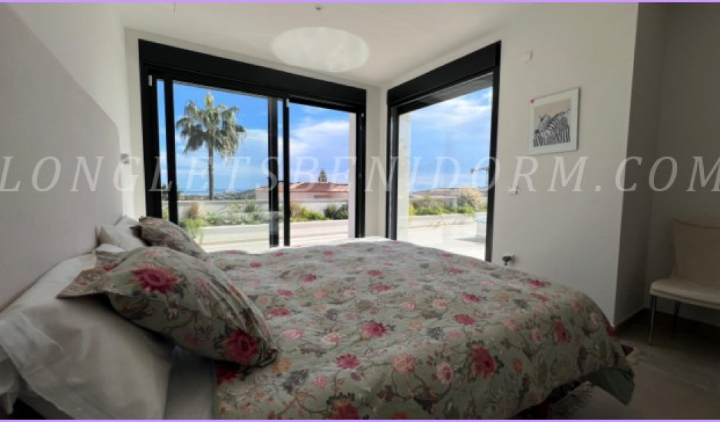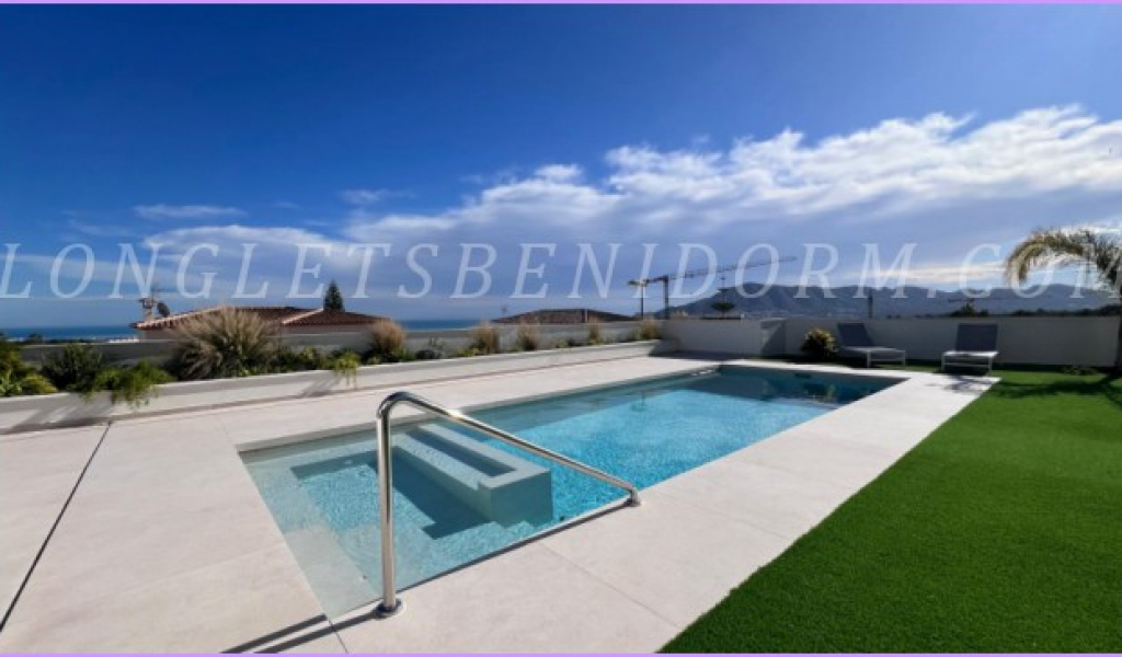 • ALQUILER ANUAL en LA NUCÍA-ALTEA: Fantástico nuevo chalet, de estilo moderno y minimalista, de lujo que cuenta con mobiliario singular y una hermosa piscina con vistas panorámicas a las montañas y al mar, con el skyline de Altea.