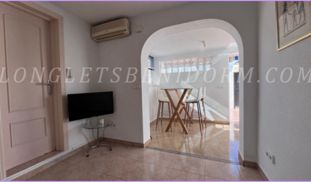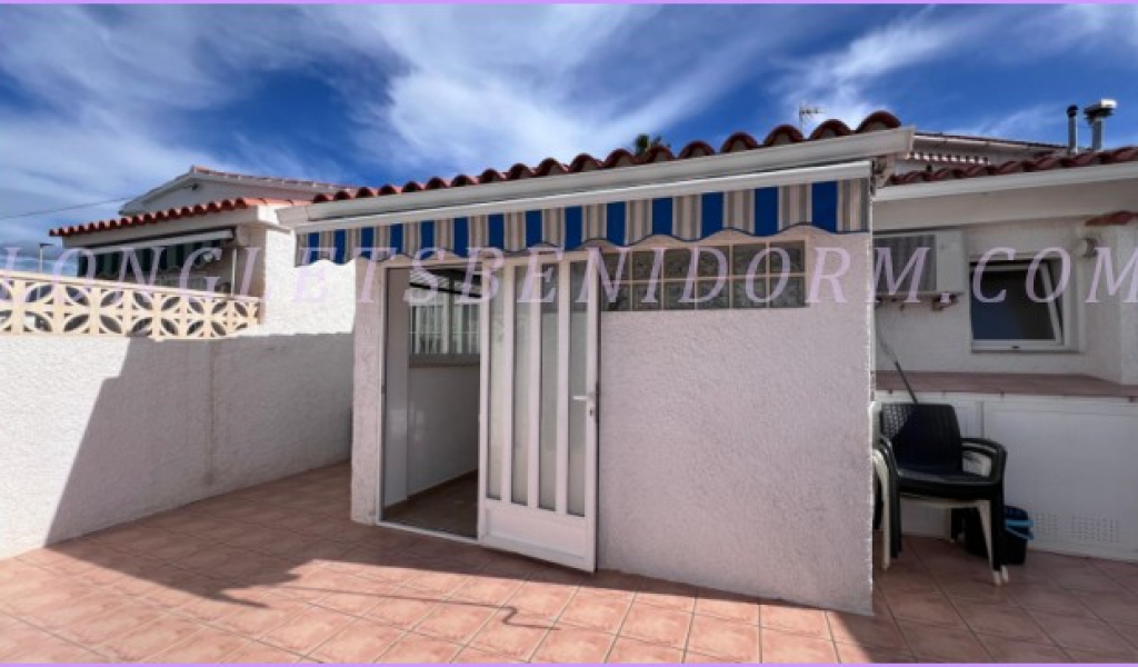 Coqueto y pequeño chalet de planta baja, amueblado y con gran terraza soleada.