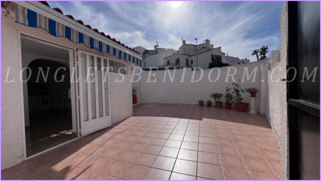 Coqueto y pequeño chalet de planta baja, amueblado y con gran terraza soleada.