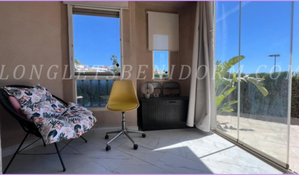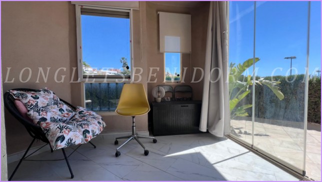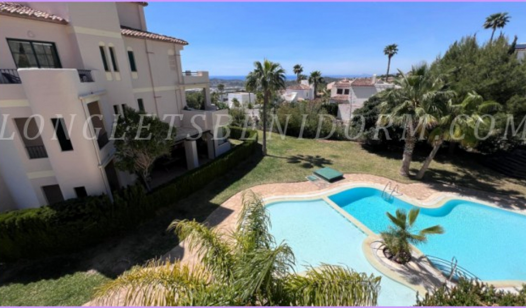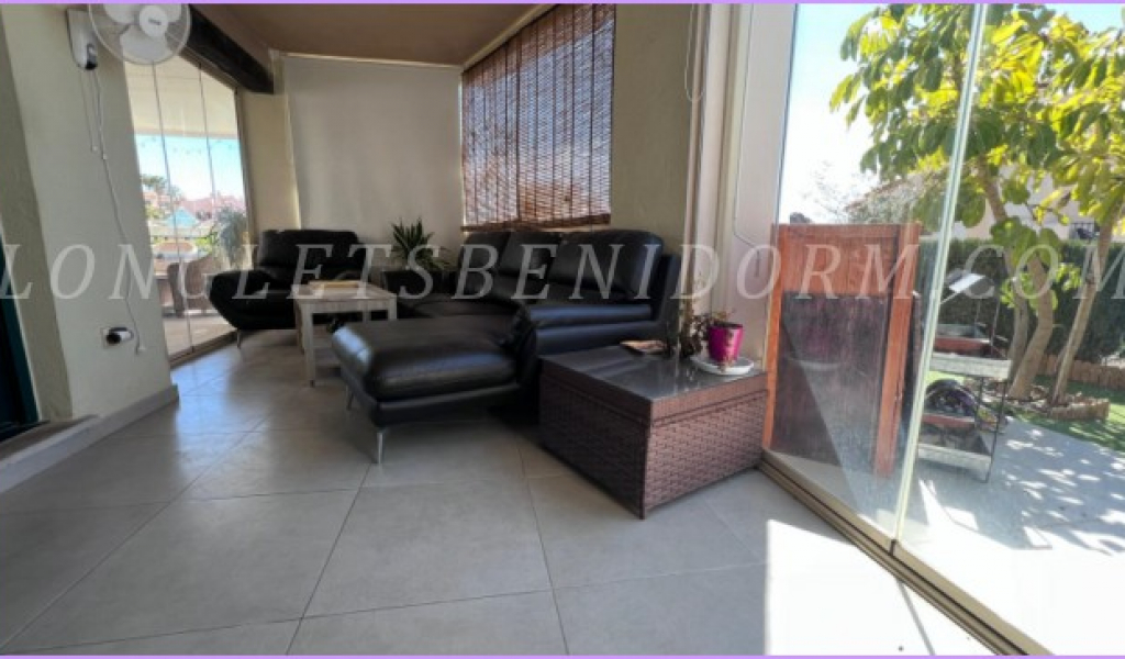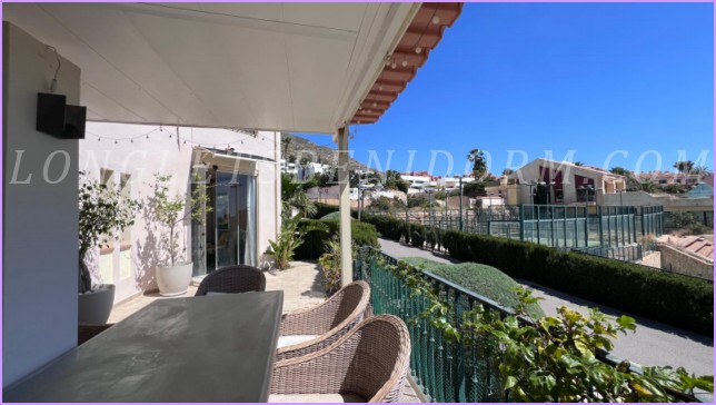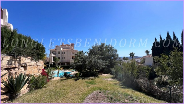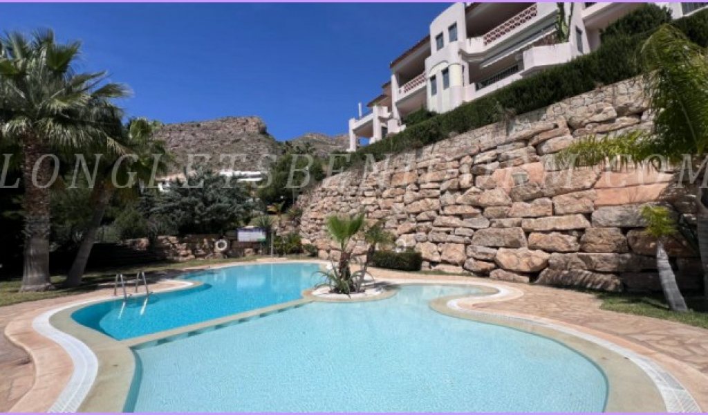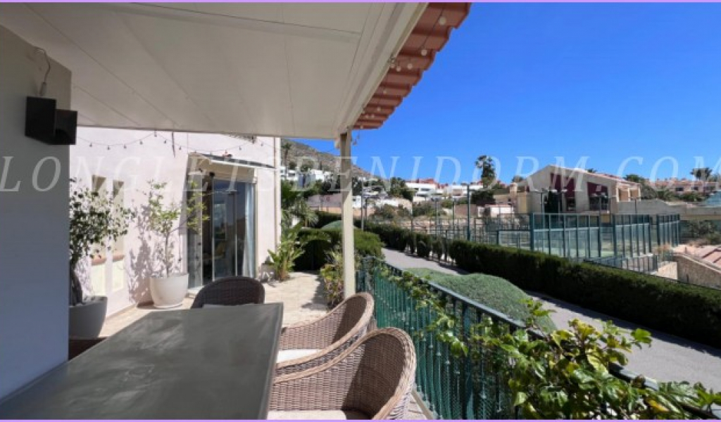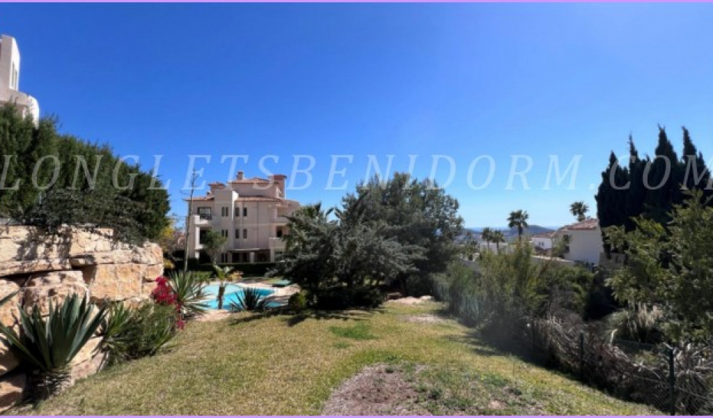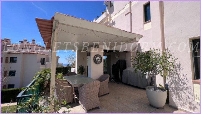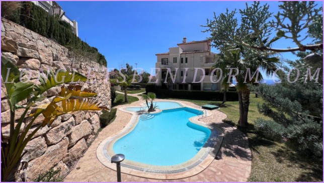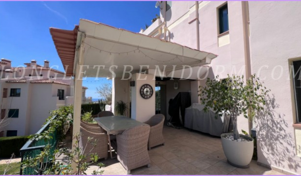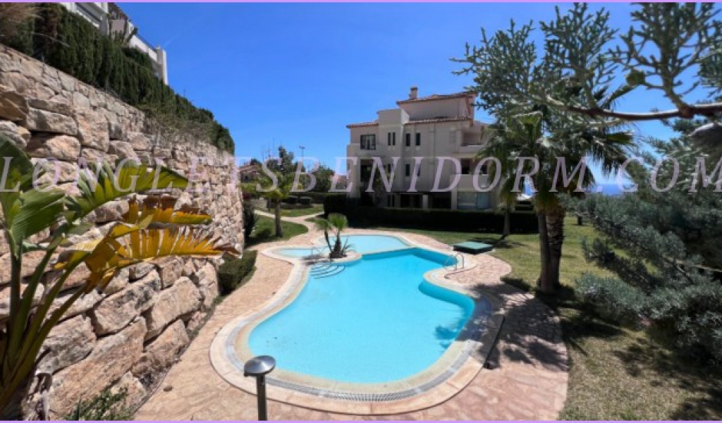 ALQUILER ANUAL en FINESTRAT (SIERRA CORTINA): Precioso apartamento amueblado de lujo en planta baja con varias terrazas y zonas ajardinadas.