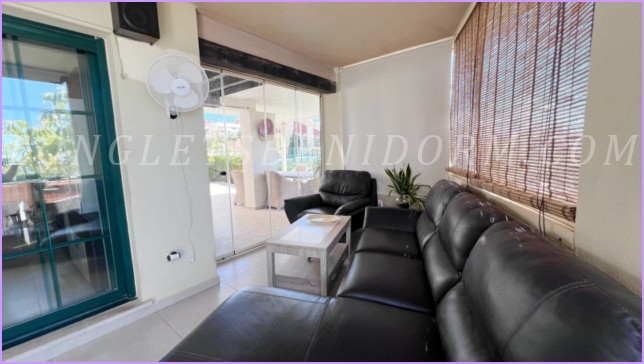 La vivienda cuenta con un gran salón con acceso a una terraza acristalada y a otra abierta techada con vistas panorámicas (y al mar). Cocina independiente con galería. Tiene 2 dormitorios y 2 baños con bañera. Desde el dormitorio principal se accede a una terraza privada acristalada y cuenta con un baño en suite con bañera de hidromasaje.