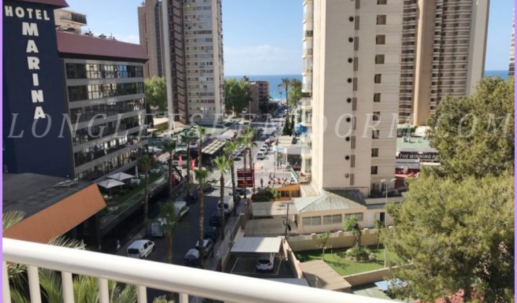 Zeer goede centrale ligging in Benidorm, naast winkels, restaurants en dicht bij de bushalte en het strand met boulevard.
