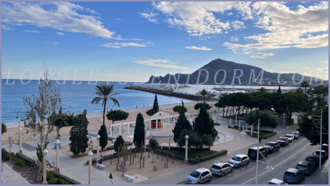 Exclusive ligging aan het strand met boulevard van Altea; naast winkels, restaurants en bushalte.