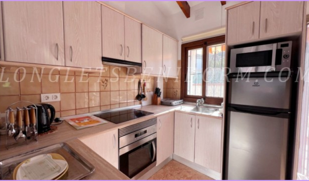 De woning heeft een woonkamer met een terras op het zuiden en een open keuken. Het heeft 2 slaapkamers met ventilatoren en 1 badkamer met douche. Het heeft airco-verwarming en horren.