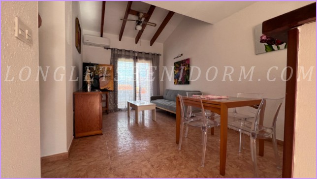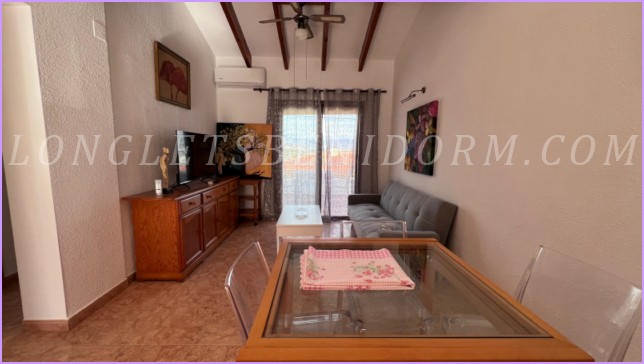 De woning heeft een woonkamer met een terras op het zuiden en een open keuken. Het heeft 2 slaapkamers met ventilatoren en 1 badkamer met douche. Het heeft airco-verwarming en horren.