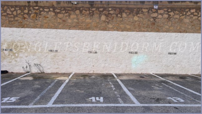PARKEERPLAATS TE HUUR in BENIDORM-RINCON: Parkeerplaats in de Avenida Ametlla de Mar, in het gebouw Agua Azul, vlakbij winkels en diensten. De parkeerplaats is ongeveer 12 m2.