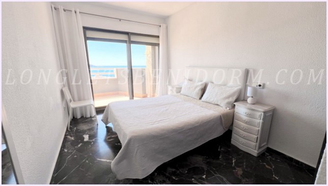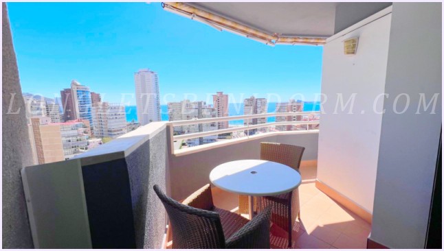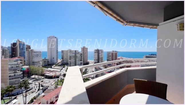 Mooi gemeubileerd appartement op de 10e verdieping met fantastisch zeezicht en panoramisch uitzicht over Benidorm, gelegen op het zuiden.